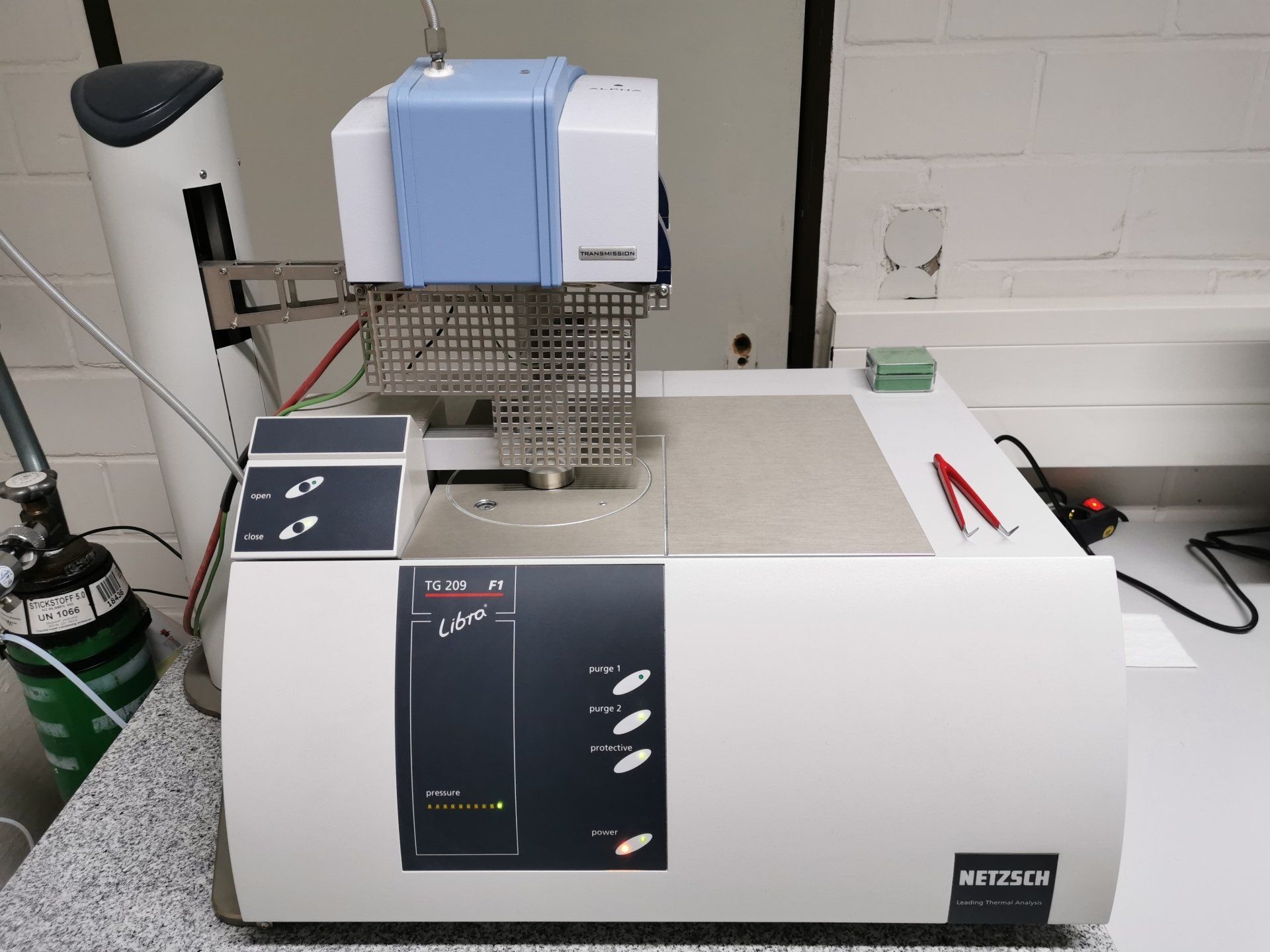 Thermogravimetry is an analytical method for examining the change in mass of a sample as a function of temperature and time. For this purpose, the sample is exposed to a constant temperature or a temperature ramp with a defined temperature increase per unit of time for a long time. During the gravimetric investigation, the sample space can be flushed with different gases. In order to prevent an oxidation reaction of the sample, pure nitrogen is used as the flushing medium in most cases. In order to promote oxidation, it is again flushed with oxygen or ambient air.