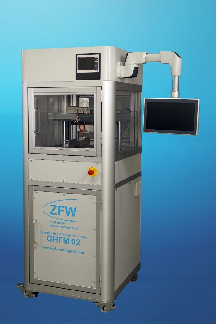 Guarded Heat Flow Meter (GHFM) measuring system, which was specially designed for the application-oriented thermal characterization of cell spacers and other insulation materials.